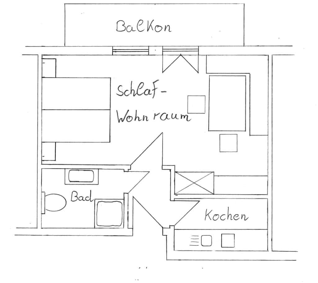 Sie besteht aus einem separaten Schlaf - Wohnraum mit HD-Flachbildfernseher mit Kabel-TV / CD-Player, einer separaten Küche mit Backofen und 4-Platten-Ceranfeld sowie einem Bad mit Dusche/WC.